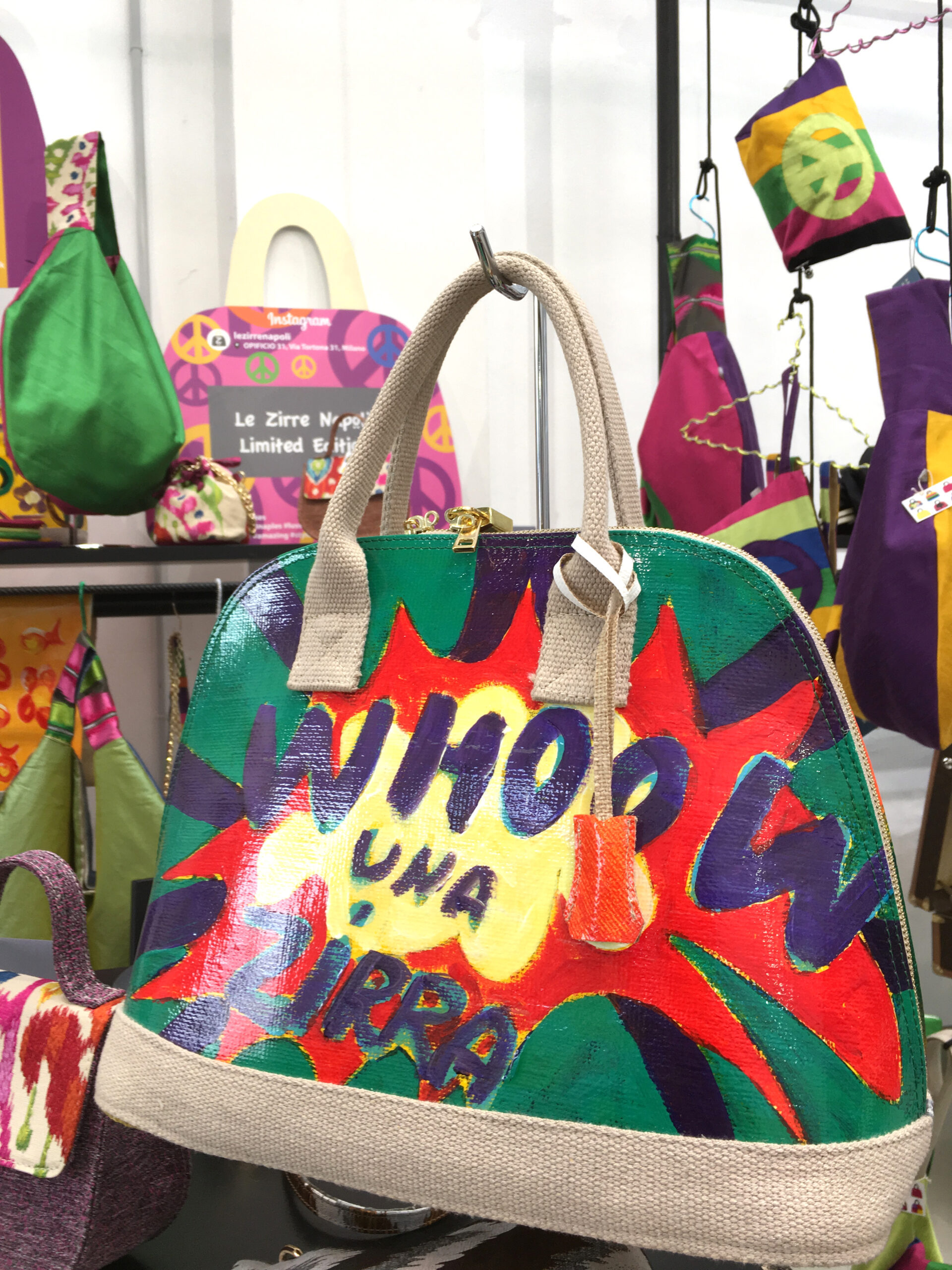 This is the new collection Spring Summer 2018 designed by the brand Le Zirre Napoli ® and inspired from ’68 that celebrates the 50th anniversari this year. We want revive that mood and style in our bags and accessories. They have a strong and colored message, very clear in the four collections, that will be presented in the nex Milan Fashion Week.